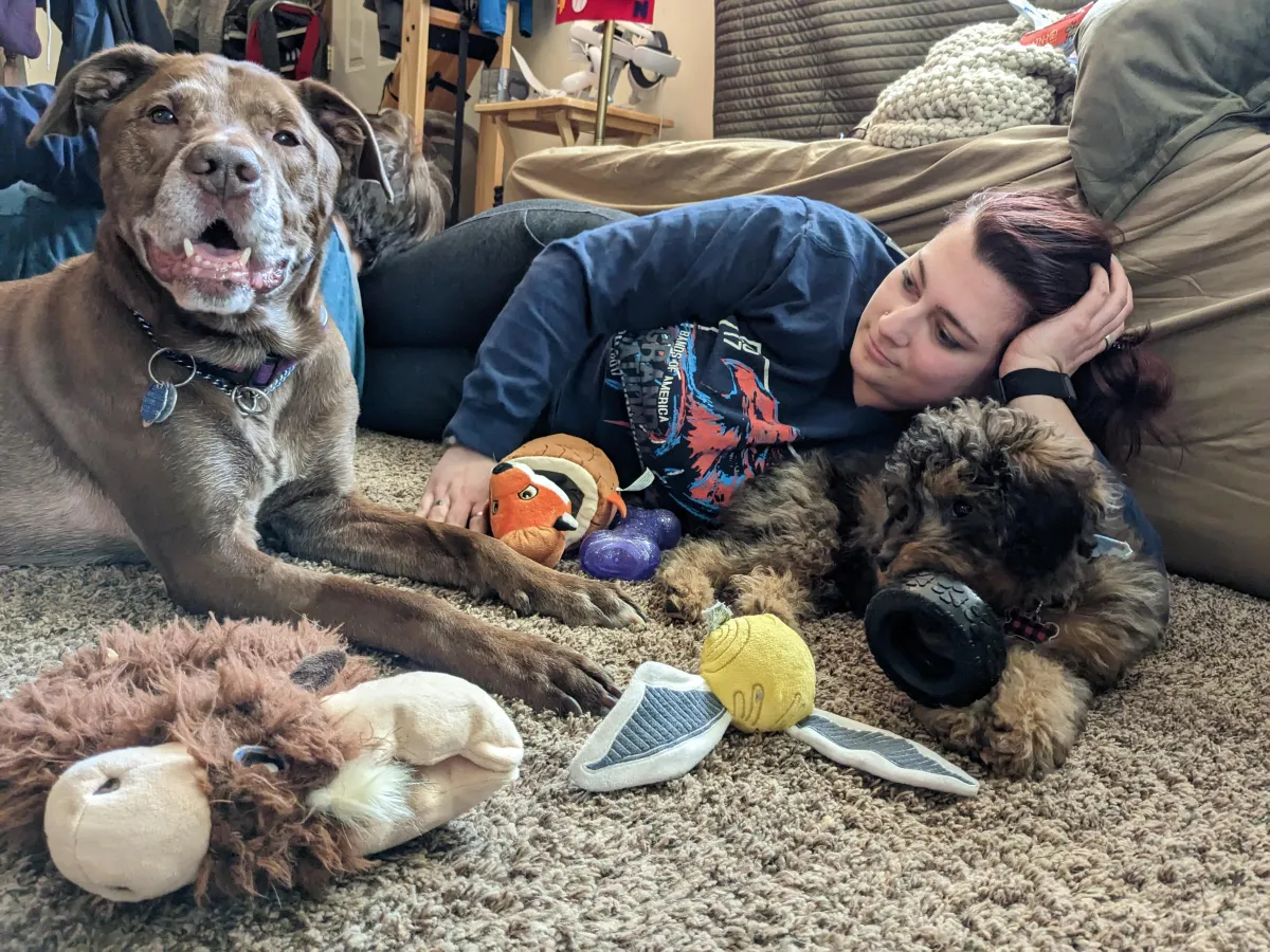 Beyond titles and training, my greatest teachers have been love and family. I married my high school sweetheart, Zac, and together we share life with our Bernedoodle, Chewbacca (or Chewie, for short). Family means everything to me. They’ve seen me through every version of myself, and they remind me daily that growth doesn’t always look graceful, sometimes it looks like trying again, choosing kindness, or laughing when plans fall apart.